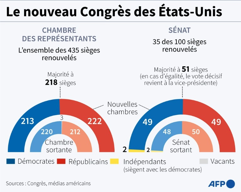 Les républicains prennent mardi le contrôle de la Chambre américaine des représentants, prêts à en découdre avec le président Joe Biden, mais doivent d'abord surmonter des dissensions dans leurs rangs autour de l'élection de leur chef.