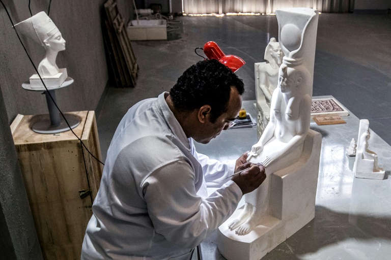 Les reproductions, à l'échelle 1:1 ou miniatures, sont accompagnées d'un certificat d'authenticité. Dans cette coopérative d'Etat de 10.000 m2, Hicham Charaoui, un ancien général, commande une armée d'environ 150 ouvriers, peintres, ébénistes, sculpteurs, dessinateurs. "Nous avons ouvert une boutique au Musée national de la civilisation égyptienne" (NMEC) en avril, dit à l'AFP l'ancien militaire. D'autres suivront dans d'autres musées, selon lui, mais aussi sur certains sites archéologiques.