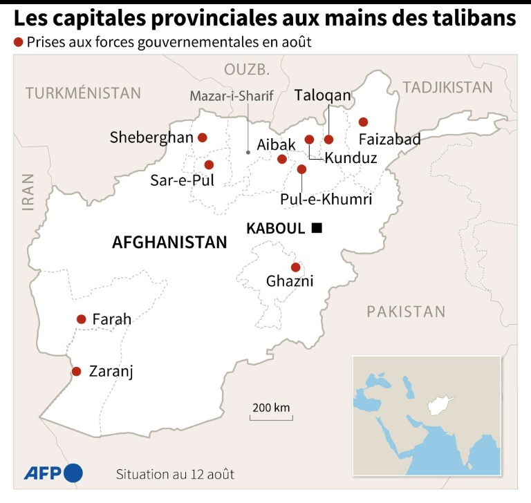Si sa chute est confirmée, après celles coup sur coup jeudi de la troisième ville du pays, Hérat, dans l'Ouest, et Ghazni, à seulement 150 km au sud-ouest de Kaboul, cela ne laisserait plus que la capitale et quelques autres territoires sous contrôle du gouvernement afghan.