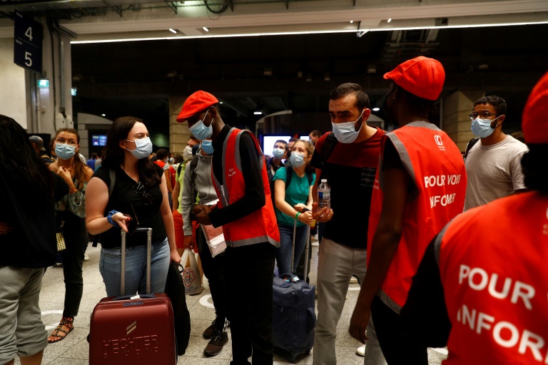 La SNCF prévoit un gros effort sur l'information, avec des messages systématiques aux passagers, des annonces sonores, des stands dans les grandes gares et éventuellement des barnums de pharmacies amies pour des tests de dernière minute. Avec la nouvelle trinité du voyage en TGV et Intercités: "un billet, un masque, un pass sanitaire". "On complète les gilets rouges (les volontaires qui guident les voyageurs, ndlr) par des gilets bleus pour le pass sanitaire", relève M. Fanichet.
