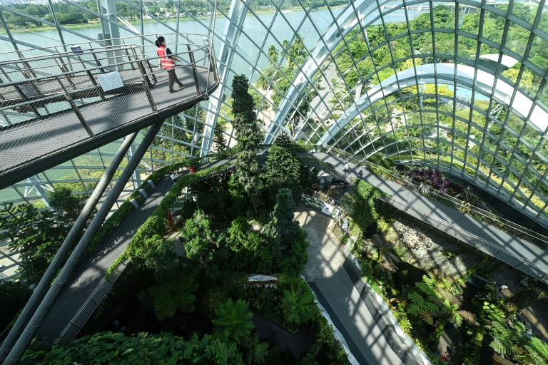 Arbres géants en béton végétalisés, jardin féerique et montagne sous serre: le site Gardens by the Bay est l'emblème de Singapour, l'attraction de la ville-Etat près du nouveau quartier d'affaires.