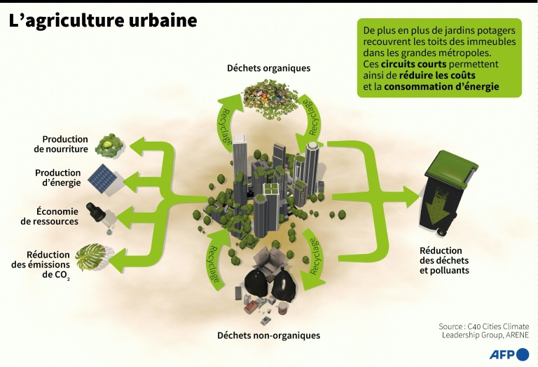 En hauteur sur un toit de New York ou un immeuble de Milan, au ras du sol dans le désert à Ryad ou les rues de Medellin: les sites végétalisés ont fleuri dans des grandes villes, les photographes et vidéastes de l'AFP les ont parcourus.
