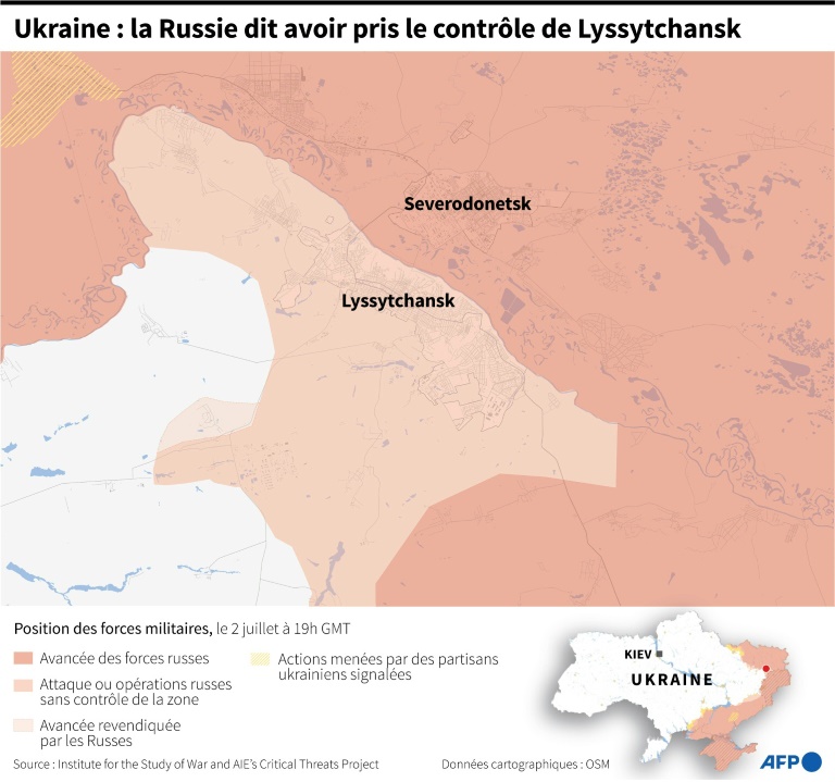 L'état-major des forces armées ukrainiennes a annoncé dimanche soir son retrait de la ville de Lyssytchansk, au coeur de combats acharnés ces dernières semaines, reconnaissant la "supériorité" des troupes russes sur le terrain, dans cette région de Lougansk, dans l'est de l'Ukraine.