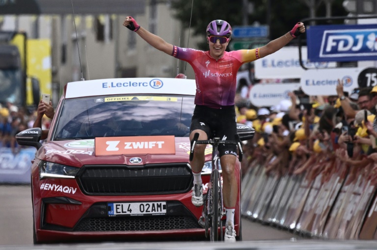 Maître du chronomètre, la Suissesse Marlen Reusser a remporté en solitaire la quatrième étape du Tour de France Femmes mercredi à Bar-sur-Aube où Marianne Vos a conservé sans inquiétude son maillot jaune. La spécialiste du contre-la-montre, vice-championne olympique à Tokyo, a profité d'un moment de flottement à une vingtaine de kilomètres de l'arrivée pour partir seule en tête. La Française Evita Muzic a pris la deuxième place en réglant le sprint parmi trois poursuivantes.