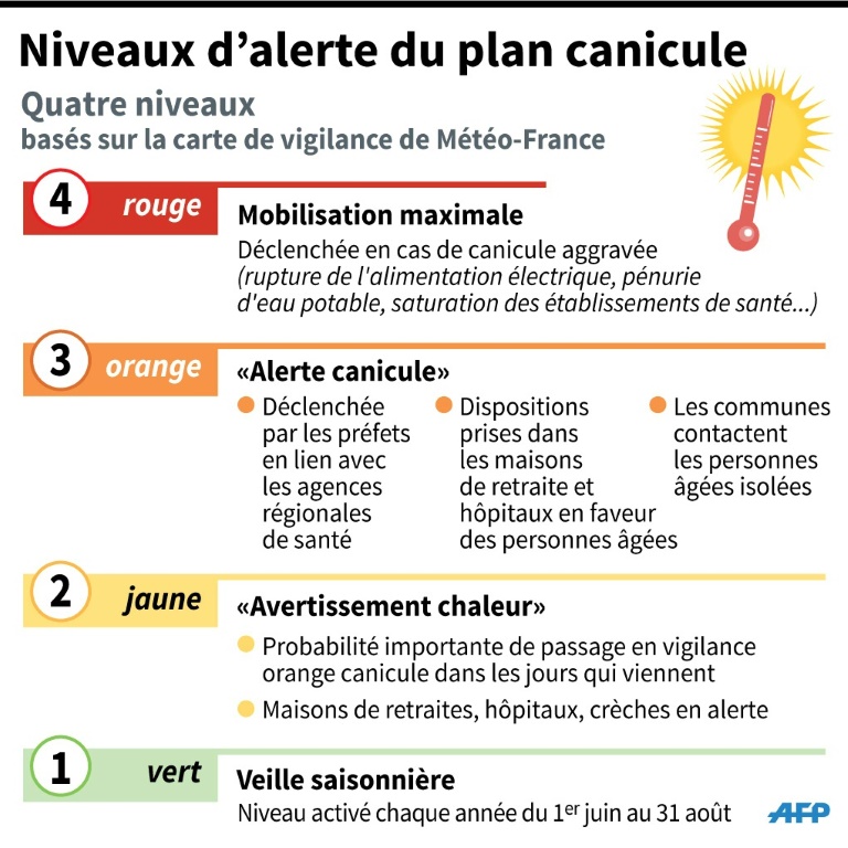 Les grandes agglomérations, Paris et Lyon, souffriront particulièrement de la canicule: ces "îlots de chaleur" urbains, marqués par les sols artificiels, peu d'arbres et des activités humaines importantes, sont toujours touchés par des températures plus importantes que les campagnes environnantes. "La mairie de Paris mettra en place des mesures dès lundi dans la capitale", a-t-elle déclaré à l'AFP, sans plus de précision.