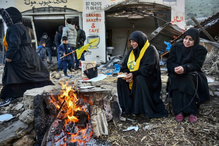 Dans la ville de Bint Jbeil, qui commande l'entrée à plusieurs villages frontaliers, des partisans du Hezbollah distribuaient des portraits de son chef tué par Israël, Hassan Nasrallah, des pâtisseries et de l'eau aux voitures.