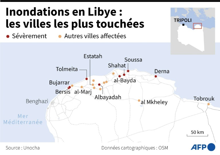 Le travail des secours et des équipes de recherche est considérablement entravé par le chaos politique qui prévaut dans le pays d'Afrique du Nord depuis la mort du dictateur Mouammar Kadhafi en 2011, avec deux gouvernements rivaux, l'un à Tripoli (ouest), reconnu par l'ONU et dirigé par le Premier ministre Abdelhamid Dbeibah, et l'autre dans l'Est, affilié au camp du puissant maréchal Khalifa Haftar.