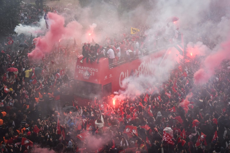 Si certains supporters portaient un masque, la distanciation sociale et les mesures barrières n'étaient pas appliquées. L'ARS des Hauts-de-France a d'ailleurs recommandé aux milliers de supporters qui ont participé aux célébrations dimanche et lundi de "réduire leurs contacts" dans les prochains jours et "faire un test préventif" de contamination au Covid-19. Entre la fumée des engins pyrotechniques et les fans juchés partout, sur les panneaux de signalisation, les feux tricolores, arrêts de bus et autres rebords de fenêtres, il a fallu plusieurs minutes pour réussir à distinguer les Dogues sur leur bus.
