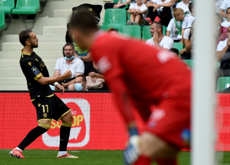 Malheureux, le milieu a dévié un coup franc d'Amine Gouiri sur l'ouverture du score niçoise (15e). Le jeune ailier néerlandais Calvin Stengs (54e) a prolongé l'avantage après une relance ratée du gardien adverse Stefan Bajic, titularisé en l'absence du suspendu Etienne Green. Andy Delort (83e) a clos la marque. Les Aiglons niçois, avec un match à rejouer contre l'OM le 27 octobre, s'envolent jusqu'au podium, à la troisième place en attendant les dernières rencontres du week-end.
