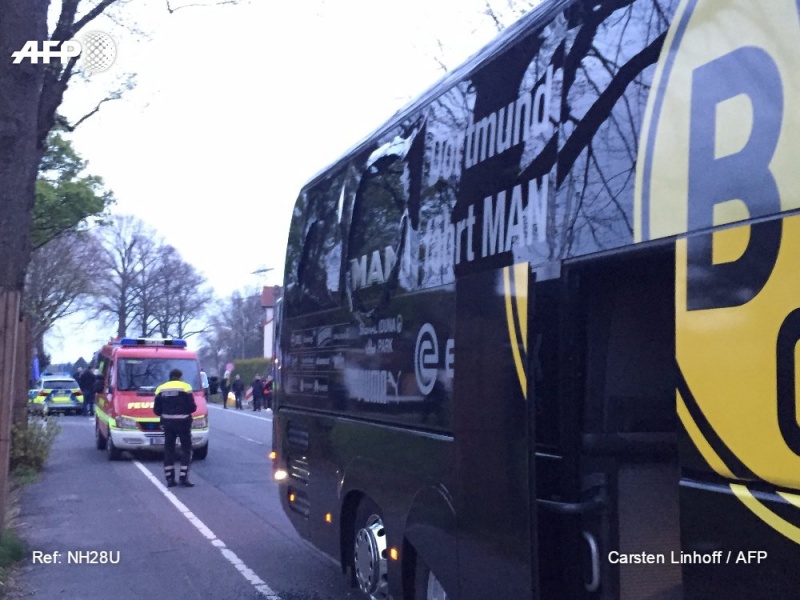 Le bus de Dortmund avait pris la route du stade pour l'une des affiches les plus alléchantes de ce quart de finale lorsque les trois explosions successives ont atteint le véhicule au niveau des fenêtres. Le défenseur Marc Bartra, 26 ans, a reçu des éclats de verre à la main et au bras et a dû être conduit à l'hôpital.