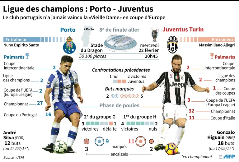 La Juventus Turin, finaliste de l'édition 2015, se lance dans les 8es de finale de Ligue des champions en position de favori sur la pelouse de Porto mercredi, dans une soirée riche d'un duel plus indécis entre Séville et Leicester.
