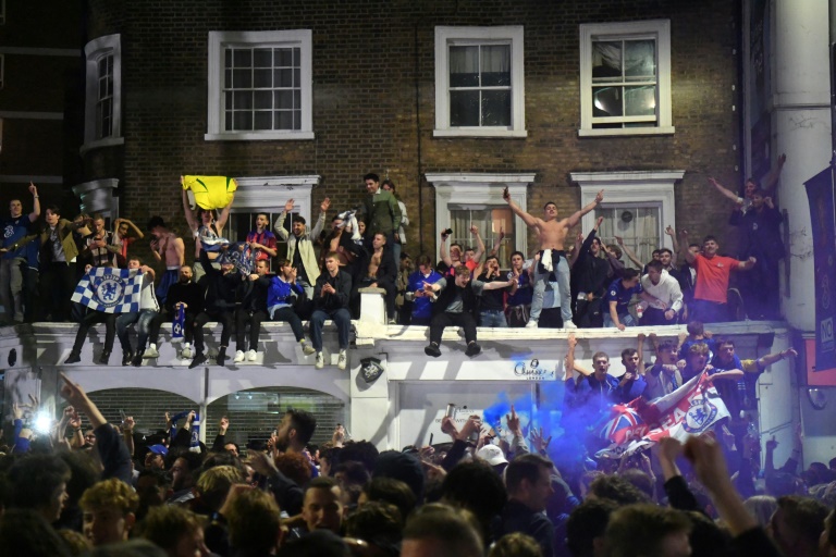 Les supporters de Chelsea se sont massés samedi soir dans les rues proches du terrain de Stamford Bridge des nouveaux rois du football européen, après leur victoire sur Manchester City en finale de la Ligue des champions samedi au Portugal.