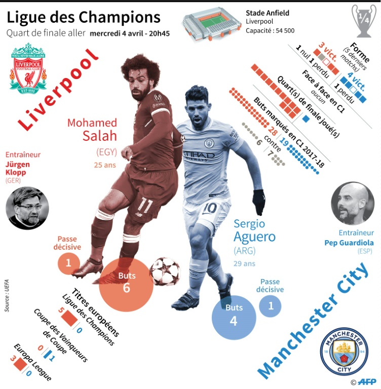 C'est bien plus qu'un feu d'artifice de buts et d'idées: Liverpool-Manchester City mercredi en quart de finale aller de la Ligue des champions (18h45 GMT) déterminera qui de Jürgen Klopp ou Pep Guardiola a la meilleure doctrine footballistique.