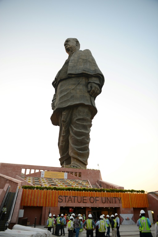 Pesant près de 100.000 tonnes, en partie fabriquée en Chine, la statue de Patel a nécessité quatre ans de travaux et le labeur de plus de 3.000 ouvriers.
