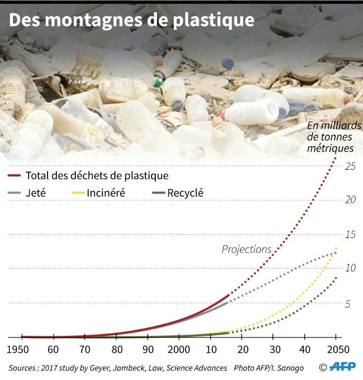 En dix ans, la production mondiale de plastiques est passée de 245 millions de tonnes à 348 millions de tonnes en 2017, selon les chiffres de la fédération européenne PlasticsEurope.