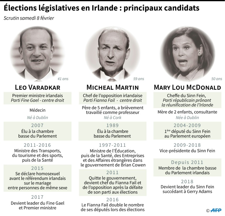 Selon un sondage Ipsos MRBI réalisé à la sortie des urnes pour les médias irlandais, le Fine Gael du chef du gouvernement arriverait en tête avec 22,4%, tout juste devant le parti républicain Sinn Fein (22,3%) et l'autre grand parti de centre-droit, le Fianna Fail (22,2%). Rien n'est joué car cette étude réalisée sur un échantillon de 5.000 électeurs comprend une marge d'erreur de 1,3%.
