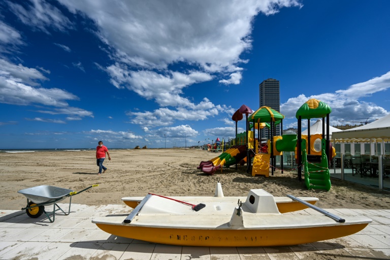 "Normalement, j'aurais dû ouvrir début mars", explique à l'AFP Simone Battistoni, dont la famille gère depuis 1927 l'établissement balnéaire Bagno Milano. Avec son collègue Guido Gargiulo, un ex-footballeur de 37 ans reconverti dans ce secteur, ils font des essais d'installation de parasols et transats en respectant les distances de sécurité.