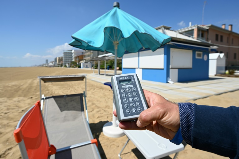 A Jesolo, à l'est de Venise, des dizaines d'hôtels sont alignés le long de la plage, style Miami Beach. Ici on mise sur la technologie pour tenir le virus à distance: parasols qui s'ouvrent avec une télécommande, toilettes qui s'autodésinfectent après chaque passage, bracelet électronique...