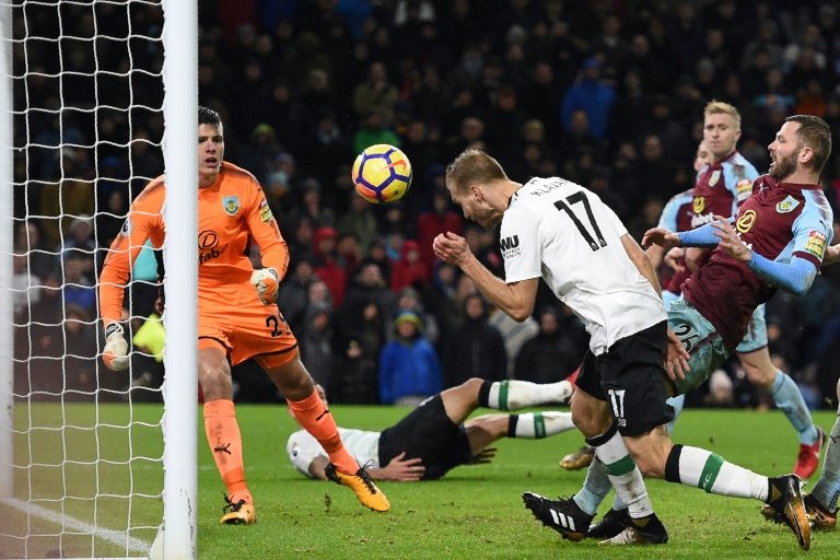 Liverpool, vainqueur 2-1 sur le fil à Burnley lors de la 22e journée de Premier League, a mis la pression sur le trio de tête du Championnat d'Angleterre, Chelsea et les deux Manchester.