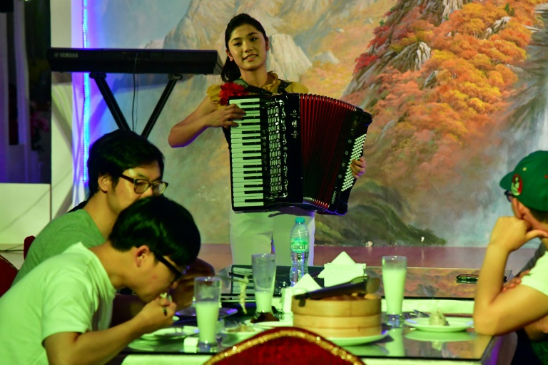 Les serveuses disent qu'elles prennent un mois de vacances par an pour rentrer au pays. "Bien sûr, nous rentrons en Corée du Nord. C'est notre pays et c'est moins cher là-bas. Tout est gratuit", affirme Songum Kim. Elle explique que les employées s'informent par la télévision nord-coréenne. "Nous ne voulons pas la guerre (...) mais nous n'avons pas peur", lance-t-elle.