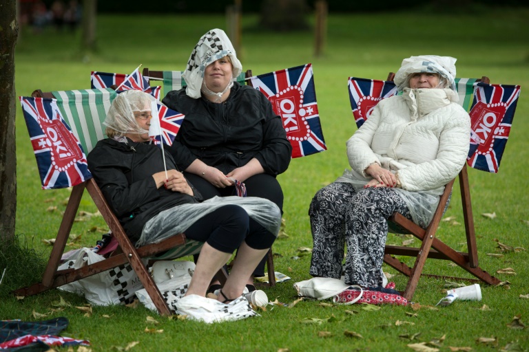 "Le temps est un peu décevant", concÚde à peine Jall Davies, 52 ans, assise à l'une des tables, à quelques dizaines de mÚtres de Buckingham. "Mais nous avons nos capes en plastique", fournies par les organisateurs, relativise-t-elle aussitÎt.