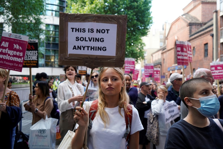 Après ce premier vol, les associations n'entendent pas baisser les bras et comptent poursuivre leur contestation en justice, alors qu'une manifestation a rassemblé des centaines de personnes devant le ministère de l'Intérieur lundi soir. "Nous sommes déçus mais notre recours plus large contre cette politique sera défendu en juillet", a réagi l'association Detention Action à propos de l'examen détaillé de la légalité de la mesure prévue le mois prochain.