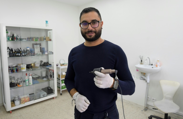 Penchée sur une peau synthétique, Ghada, 19 ans, dessine avec brio des figures géométriques sophistiquées à l'encre de Chine avant de passer au dermographe, une machine permettant de tatouer. La jeune femme, qui étudie également le management touristique et hôtelier, dit à l'AFP se former au tatouage "par passion", mais pas seulement. "C'est un art et un métier d'avenir, et c'est un secteur où il n'y a pas beaucoup de femmes, ce qui représente pour moi un défi." Le tatouage, autrefois répandu dans les communautés rurales tunisiennes, a longtemps été jugé grossier, vulgaire, réservé à des personnes peu éduquées ou ayant mal tourné. Mais ces dernières années, il redevient tendance, notamment auprès des jeunes, qui choisissent des motifs plus ostentatoires.