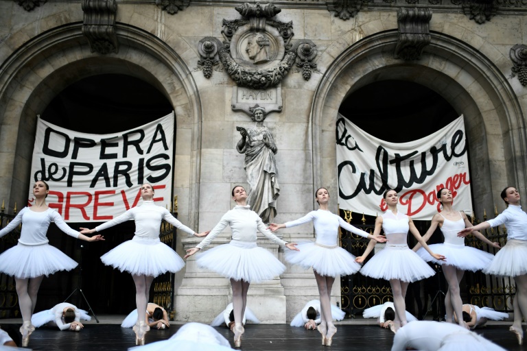 A quelques heures de Noël, la mobilisation des grévistes de l'Opéra de Paris avait fait le tour du monde quand une quarantaine de danseuses du corps de ballet de l'Opéra avaient donné un mini-spectacle improvisé devant des affiches "Opéra de Paris en grève" et "La culture est en danger", sous les applaudissements des badauds.