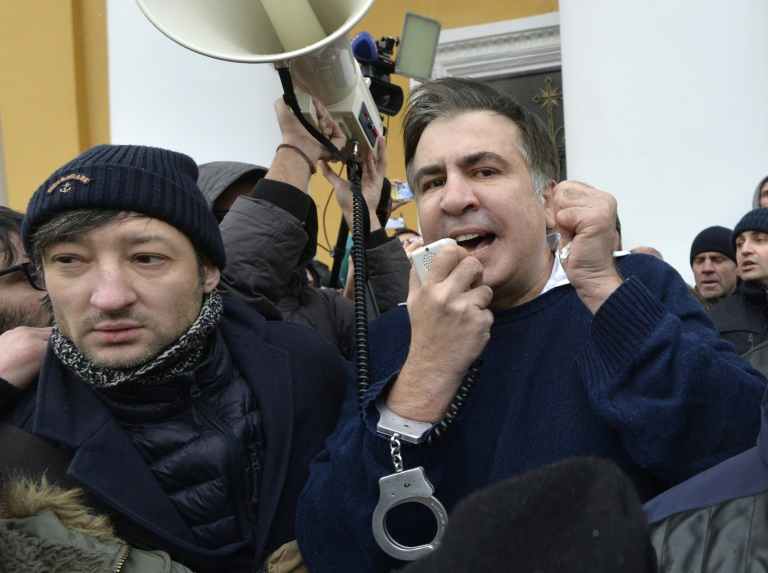 L'ex-président géorgien Mikheïl Saakachvili, devenu opposant au pouvoir ukrainien, a été brièvement interpellé par la police mardi à Kiev avant d'être libéré sous pression de centaines de ses partisans descendus dans la rue pour bloquer le fourgon qui le transportait.