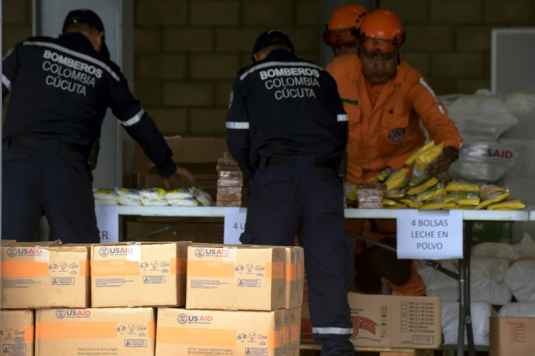 Plusieurs tonnes de médicaments, de nourriture et de produits de première nécessité sont stockées depuis jeudi dans des entrepôts de la ville colombienne de Cucuta, tout près du pont transfrontalier de Tienditas, que des militaires vénézuéliens ont bloqué avec deux conteneurs et une citerne.