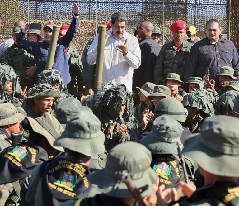 Dans une nouvelle tentative de briser le soutien apporté par l'armée au gouvernement, le chef de l'opposition a prévenu les militaires qu'empêcher l'entrée de l'aide constituerait un "crime contre l'humanité". L'armée a lancé dimanche cinq jours de manoeuvres dans tout le pays pour faire face à une éventuelle intervention militaire américaine.