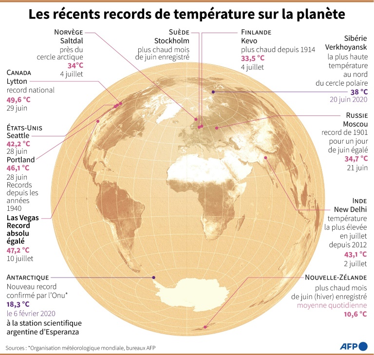 Cet épisode en juin aurait été "presque impossible" sans le réchauffement climatique causé par les humains, avaient conclu des experts, estimant que le changement climatique avait rendu cet événement au minimum 150 fois plus susceptible de se produire.