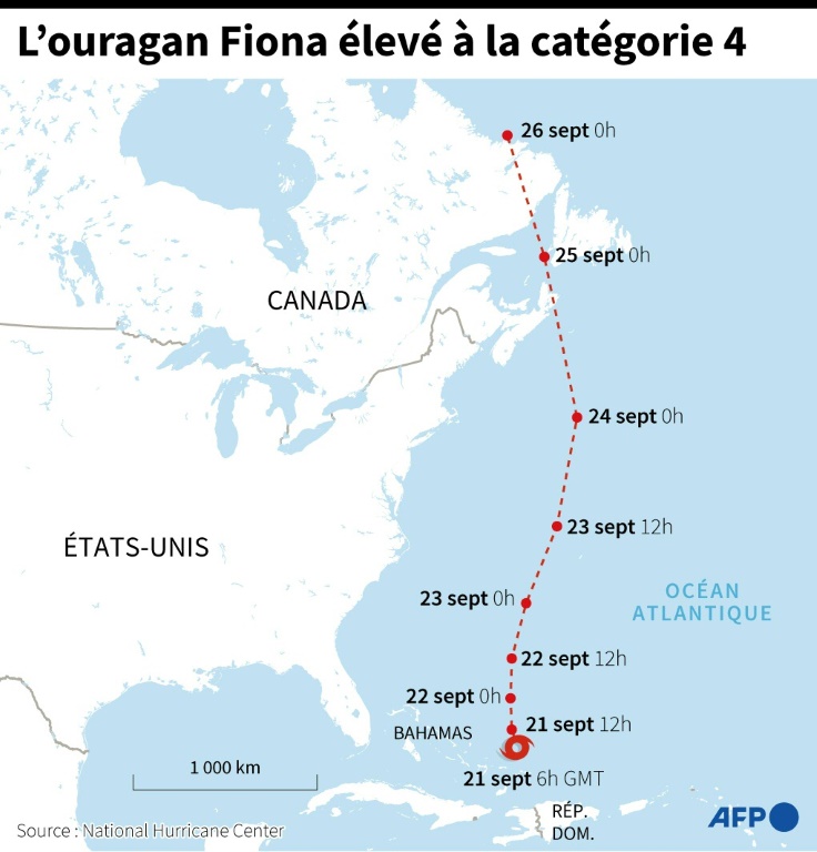 Fiona doit s'approcher des Bermudes, un territoire britannique abritant quelque 64.000 personnes, tard jeudi, selon le Centre national des ouragans (NHC), basé à Miami.