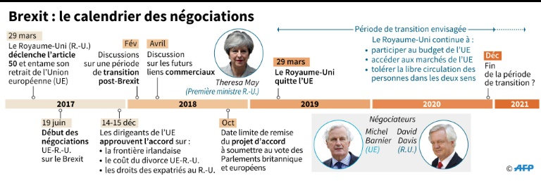 Mais les négociations n'ont pas encore formellement débuté sur ce point, et les Européens reprochent aux Britanniques de tarder à formuler leurs souhaits, sur fonds de divisions au sein de la majorité conservatrice. La Première ministre Theresa May doit justement prononcer vendredi un discours attendu sur le partenariat post-Brexit qu'elle vise, tandis que les 27 adopteront leurs propres axes de négociation sur ce point lors d'un sommet en mars à Bruxelles.