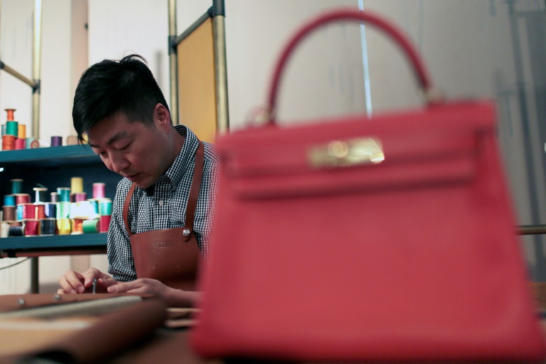 Entourée de curieux qui la prennent en photo, sous une halle installée dans le quartier chic de Polanco, à Mexico, une couturière d'Hermès, marque emblématique du luxe français, plante d'un geste précis son aiguille dans la soie d'une cravate.