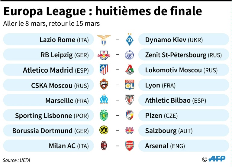 Après la désillusion du PSG en Ligue des champions, Lyon et Marseille disputent jeudi les 8es de finale aller d'Europa League contre le CSKA Moscou (19h00) et l'Athletic Bilbao (21h05), en espérant redonner un peu d'allant au football français.