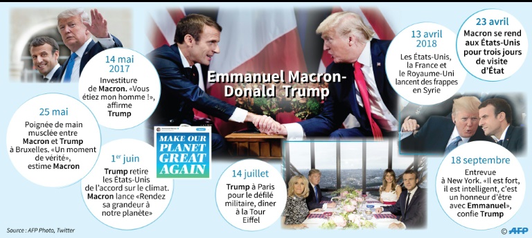 Dès son élection en mai 2017, le chef de l'Etat français, contrairement à ses partenaires européens, a choisi de nouer une alliance privilégiée avec Donald Trump, dont il apprécie le côté disruptif. "Nous sommes tous les deux des francs-tireurs anti-système", a-t-il répété sur Fox News. Il a qualifié de "moment direct, lucide et naturel" leur première rencontre en mai 2017 à Bruxelles. M. Macron avait alors serré fort la main de son homologue, connu pour attirer vers lui celle de son interlocuteur pour marquer sa supériorité.