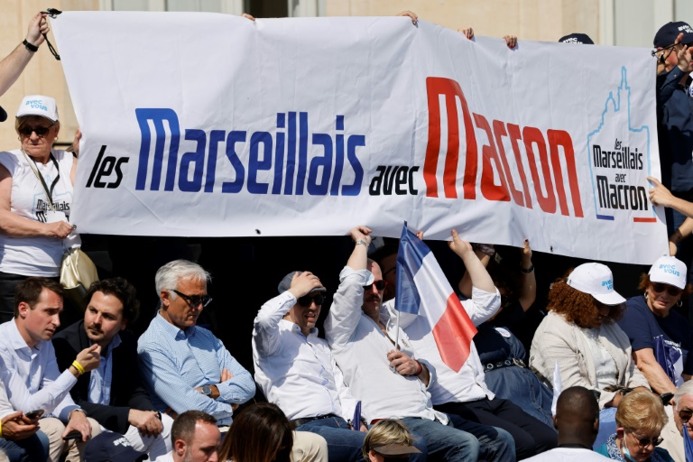 Fanfare, glaces et chapeaux de paille: dans les jardins du Pharo à Marseille, Emmanuel Macron était attendu devant plusieurs milliers de personnes samedi pour un grand meeting d'entre-deux tours, où il compte s'adresser aux électeurs de gauche, selon son entourage.
