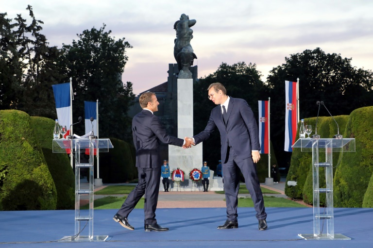 Agitant des drapeaux français, des milliers d'habitants de Belgrade avaient été conviés à "venir saluer le président français", dans une ville pavoisée aux couleurs de la France. La Serbie avait déjà réservé un accueil triomphal à Vladimir Poutine le 17 janvier 2019, avec un défilé de dizaines de milliers de Serbes.