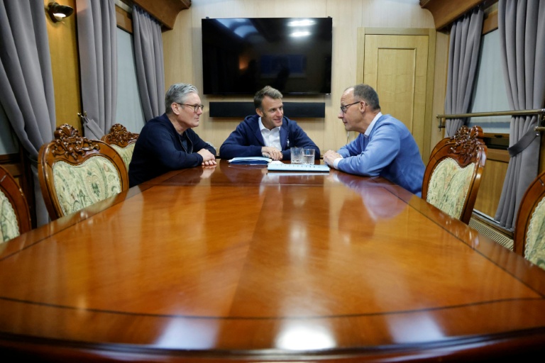 Emmanuel Macron, Keir Starmer et Friedrich Merz ont embarqué dans le même train en Pologne près de la frontière avec l’Ukraine et se sont retrouvés en tenue décontractée dans un wagon pour un échange à trois, ont constaté vendredi dans la soirée des journalistes de l’AFP.