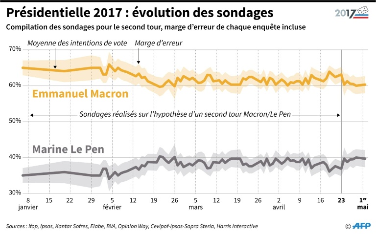 L'ex-ministre de l'Economie, toujours donné vainqueur du second tour par les sondages avec environ 60% des voix, continue en outre d'engranger des soutiens, parfois symboliques, comme celui, appuyé, de l'ancien ministre grec (du gouvernement de la gauche radicale Alexis Tspiras) Yanis Varoufakis dans Le Monde.