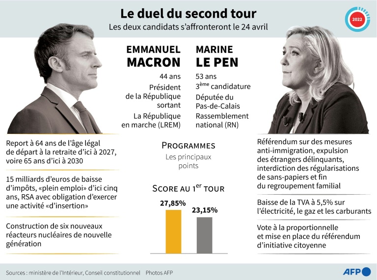 Pour contrer son adversaire, Emmanuel Macron, arrivé en tête au premier tour (27,85%) avec plus de quatre points d'avance, a réactivé le "front républicain". Qui semble toutefois avoir perdu de sa vigueur par rapport à 2017 et 2002, où Jean-Marie Le Pen, le père de Marine, avait été largement dominé au second tour par Jacques Chirac.