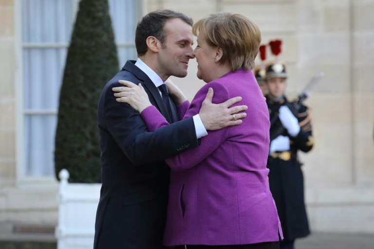 Emmanuel Macron a proposé vendredi, en recevant Angela Merkel à l'Elysée, d'établir "une feuille de route claire et ambitieuse d'ici juin" pour refonder l'Union européenne.