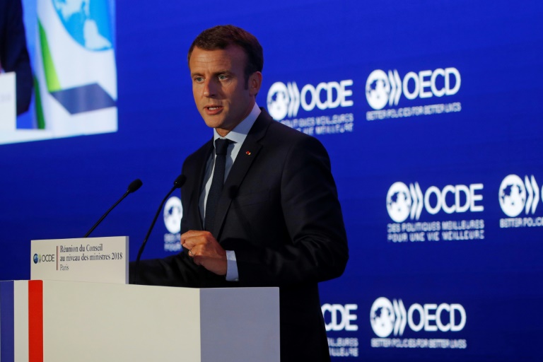 "C'est le moment de nous saisir de cette question", a déclaré le président français dans un discours devant l'Organisation pour la coopération et le développement économiques (OCDE) à Paris, à deux jours de la possible application par les Etats-Unis de taxes punitives sur l'acier et l'aluminium importés.