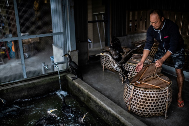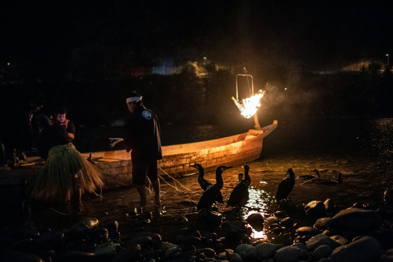 Ce statut a été créé en 1890 pour protéger cette tradition de pêche dite "ukai", alors sur le déclin après avoir été préservée au fil des époques par les différents pouvoirs. Le salaire est symbolique (8.000 yens par mois, soit 61 euros), mais il est complété par des aides des autorités locales. L'heure approche, les ténèbres commencent à envahir le quartier où vivent les maîtres-cormorans, en bordure de la rivière dominée par le mont Kinka. Leurs assistants emportent alors les cages en bambou où ont pris place les palmipèdes au plumage noir, long bec et oeil bleu perçant, et se faufilent dans les ruelles jusqu'aux bateaux de bois.