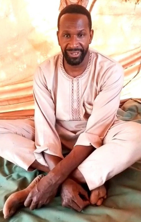 Assis par terre, les jambes croisées sur une toile de couleur verte, dans ce qui semble être une tente, il dit s'adresser à sa famille, à ses amis et aux autorités françaises "pour qu'elles fassent tout ce qui est en leur pouvoir pour me faire libérer".