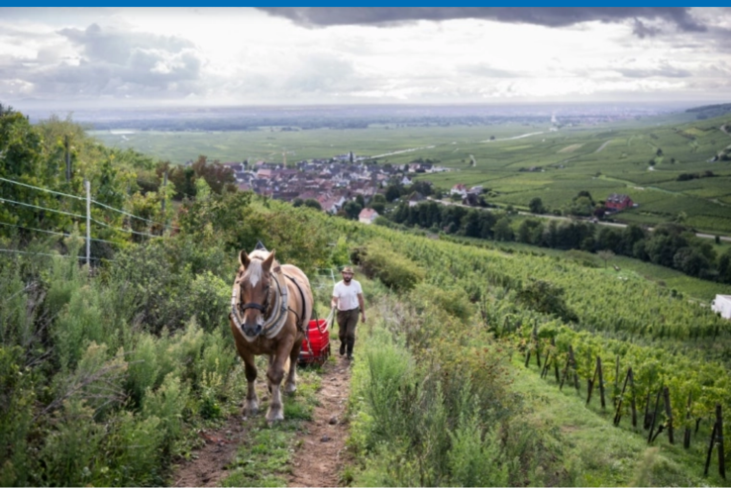 Sur les coteaux bucoliques du vignoble alsacien, Malik Oudni entame la vendange de ses grappes, comme la plupart des vignerons locaux, à un détail près: pas de tracteur mais un cheval et une charrue.