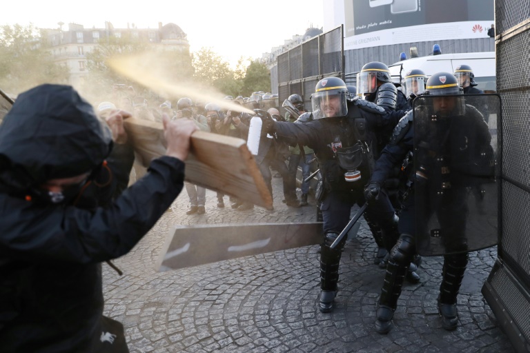 Six policiers et trois manifestants ont été légèrement blessés, lors de ces heurts qui ont rassemblé plusieurs centaines de jeunes "antifascistes" à Paris "contre" Emmanuel Macron et Marine Le Pen qualifiés pour le second tour de la présidentielle, et provoqué quelques dégradations.