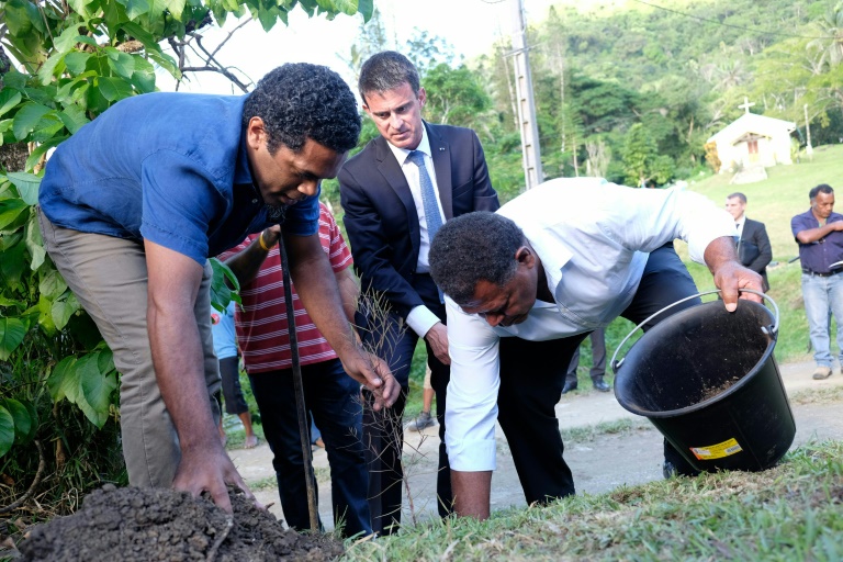 Manuel Valls a mis en terre un pied de santal, juste à côté du jeune sapin planté en 2014 par François Hollande, pendant que les conifères de Lionel Jospin, Michel Rocard, François Fillon ont atteint déjà une certaine taille, illustrant à leur façon l'attention constante portée par Paris au dossier calédonien. "Celui de Jospin pousse mieux que celui de Rocard", constate, amusé, un jeune de la tribu.