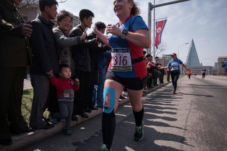 Les rencontres spontanées avec la population nord-coréenne sont rares lors des visites d'étrangers, d'où l'enthousiasme des coureurs qui multiplient les "high-five" avec le public. "Etre près des gens, les toucher, c'est quelque chose", explique Soleiman Dias, employé d'une école de Fortaleza, au Brésil, pour qui ce marathon est "l'expérience d'une vie".
